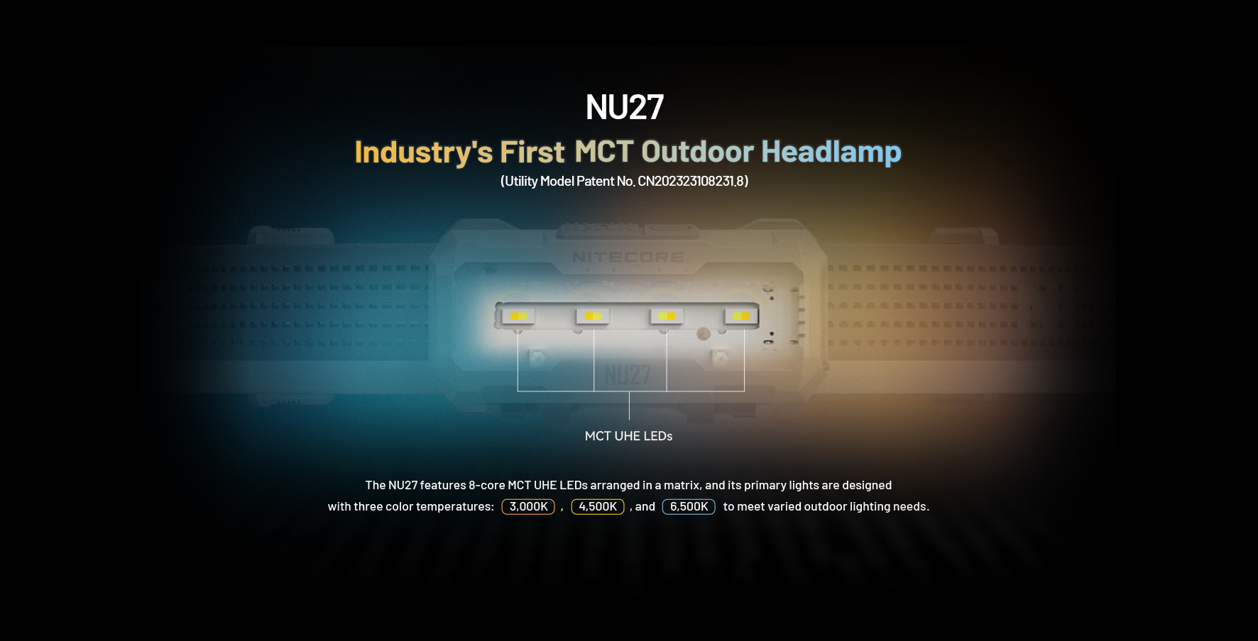 MCT stands for Multiple Color Temperatures. The MCT UHE LEDs (Utility Model Patent No. CN202323108231.8), developed by NiteLab based on UHE LEDs, offer both multiple color temperatures and high luminous efficiency.